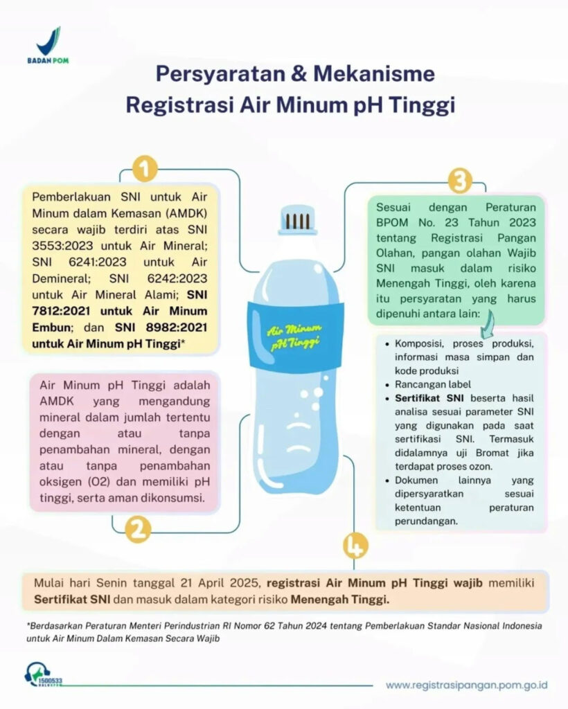 Pabrik yang memenuhi seluruh persyaratan dapat mengajukan sertifikasi SNI wajib, yang menandakan bahwa produk tersebut aman dikonsumsi dan telah melalui pengawasan ketat. Logo SNI pada kemasan menjadi tanda kepercayaan bahwa air minum tersebut memenuhi standar mutu nasional.
